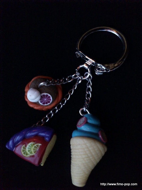 Il y en aura pour tous les goûts : porte-clés Fimo biscuits, porte-clés Fimo réglisse, porte-clés Fimo glaces, porte-clés Fimo gâteau, etc…